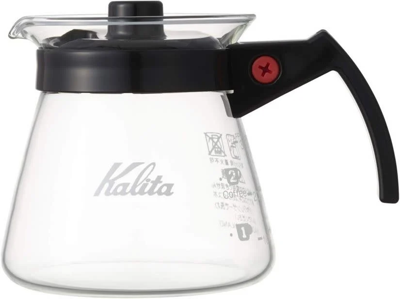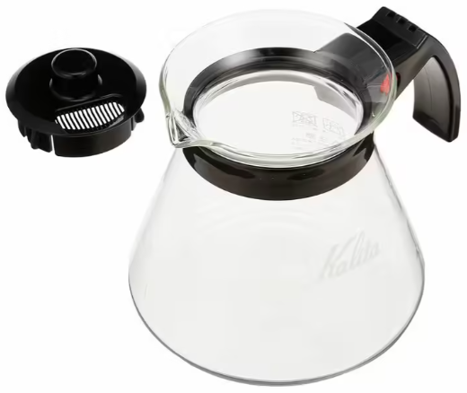 Jarra de vidro Kalita Server 800ml com cabo preto e tampa. *Não pode ir ao fogo Pode levar ao microondas, não ultrapassando 110°C